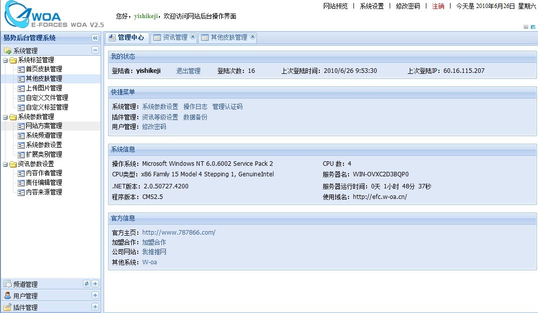 E-Forces CMS 系統功能概述!易勢CMS集成信息、論壇、商城、個人會員系統、企業會員、調查問卷,網站頁面可以分為生成靜態頁與偽靜態兩種模式,靈活的標簽調用,強大的系統拓展功能,讓管理網站超級簡單。