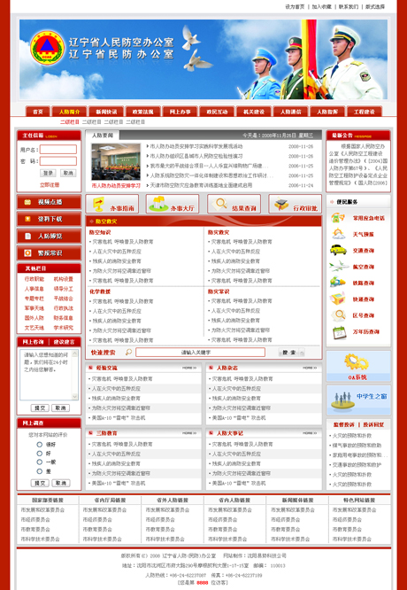 遼寧省人民防空辦公室又稱遼寧省民防辦公室,簡稱省人防辦或省民防辦(一個機構(gòu)兩塊牌子)。遼寧省人民防空辦公室是省政府主管人防工作的綜合職能部門,是省國防動員委員會的常設(shè)辦事機構(gòu),受省政府和省軍區(qū)雙重領(lǐng)導(dǎo),擔(dān)負戰(zhàn)時防空和平時防災(zāi)救災(zāi)兩種職能。 |